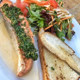 Took my nine year old out for a daddy/daughter date night and came here for dinner. This was my first time in. The menu has low carb options, so I was intrigued.Our waitress was very polite, attentive and sweet. I ordered the salmon steak. Seeing as how I'm used to these steaks from Japanese or Korean markets (where they are ut as steaks), I was not sure what to expect. I also gave cooking specifications: crispy on the outside, moist and juicy inside (basically seared/rare).The salmon delivered on both counts and even had crispy skin! A delicious cut and they gave me more vegetables in place of the potatoes. It was bomb!My daughter's plate looked real yummy. Beef bolognese and she was very happy with the flavor. My girl LOVES pasta like her mom, so I know if she digs it, it's good.The place is not too big. Cozy and comfortable although the interior is a little too dark for my liking (as you can tell from the pictures). I do recommend this joint and I will definitely be back.Now I'm really curious about their Sunday brunch! That is next to try.
